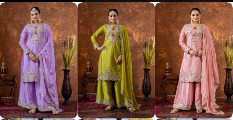 A Collection of three Exquisite Pakistani Salafat Suits in Captivating Colors