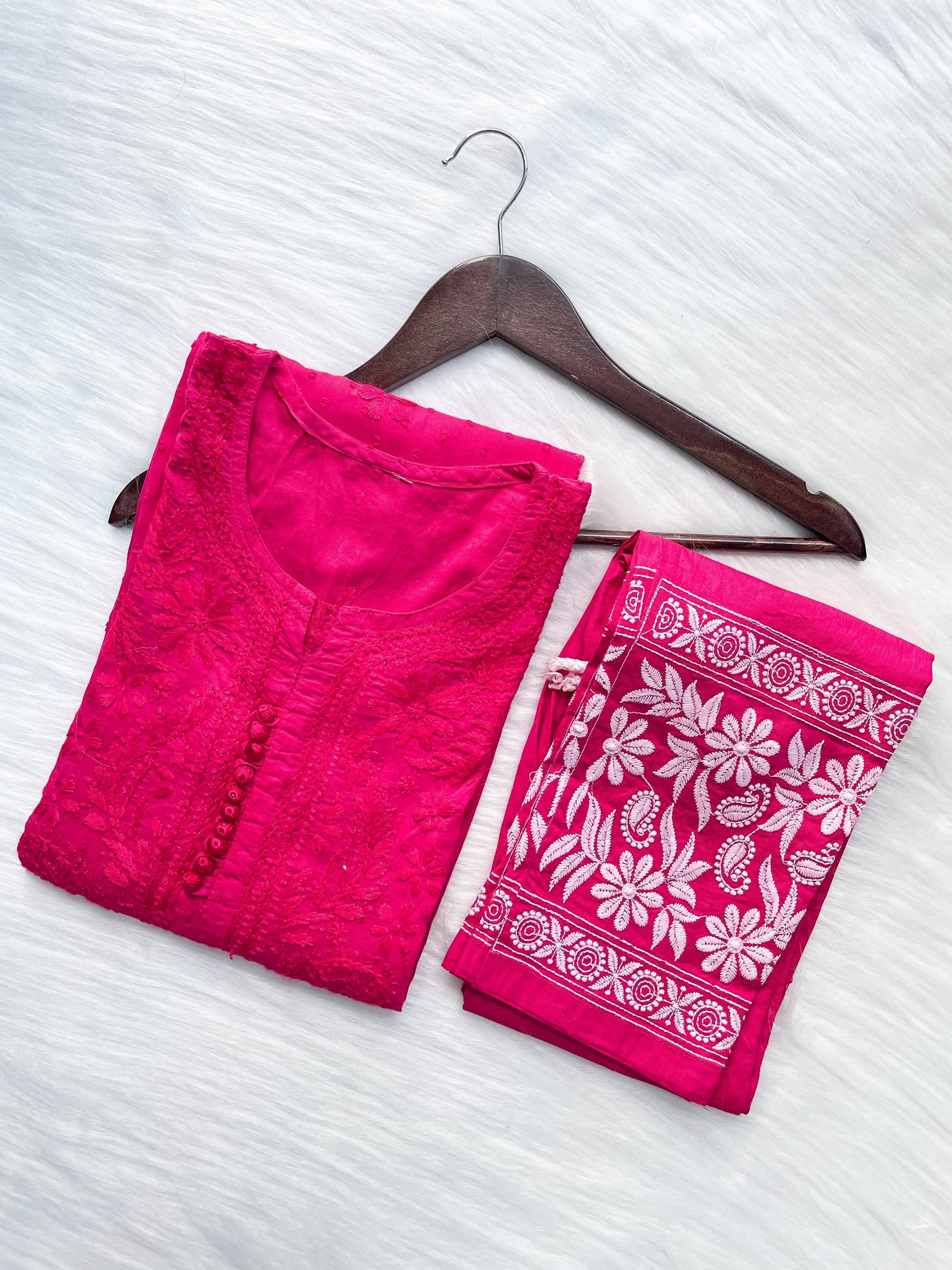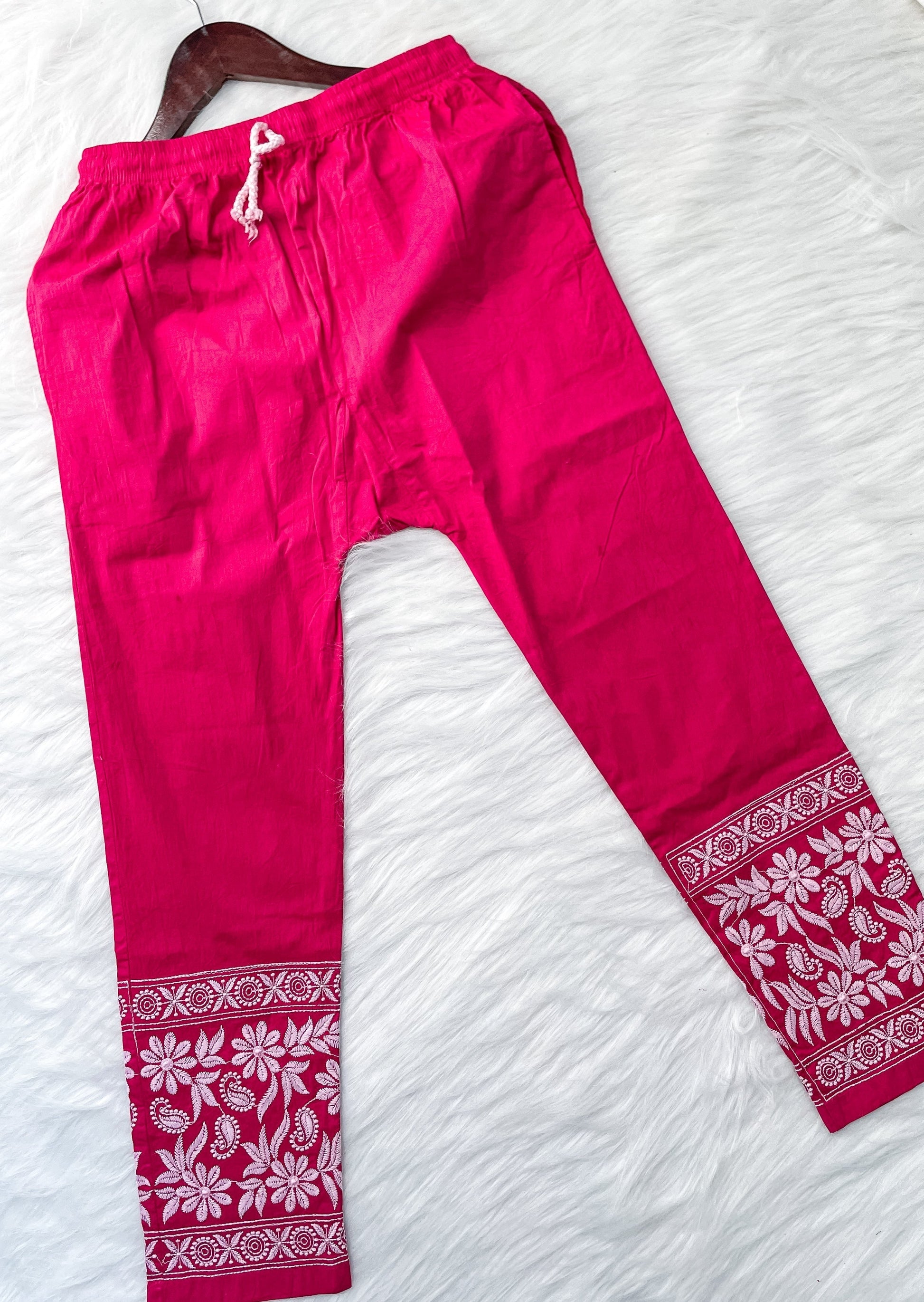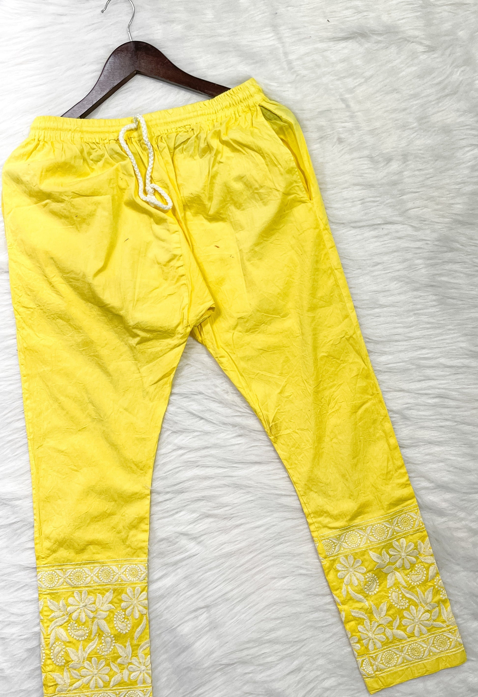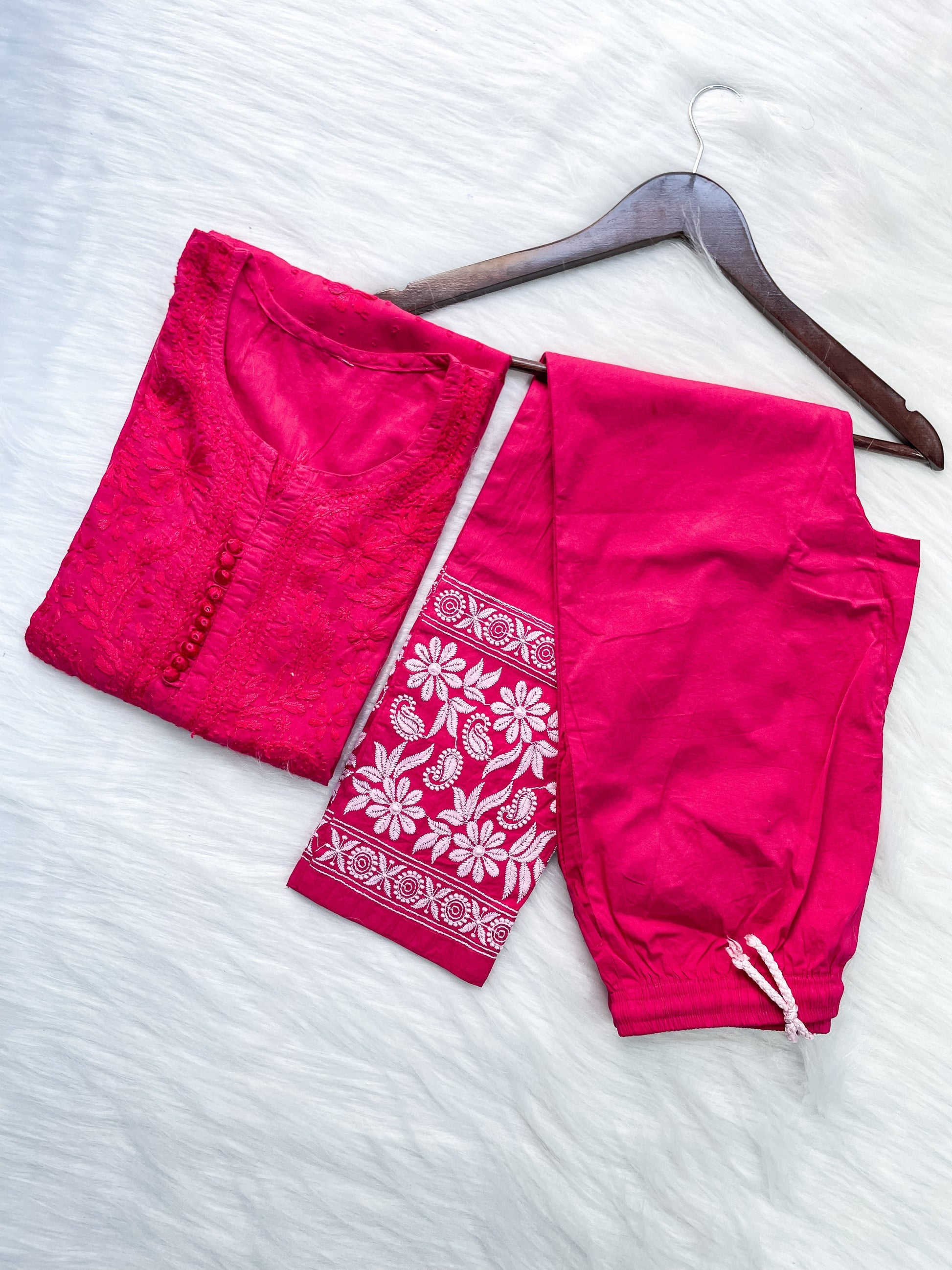 Dyed Cotton Chikankari Kurti & Lycra Pant Set, Pockets Both Side of the Pant