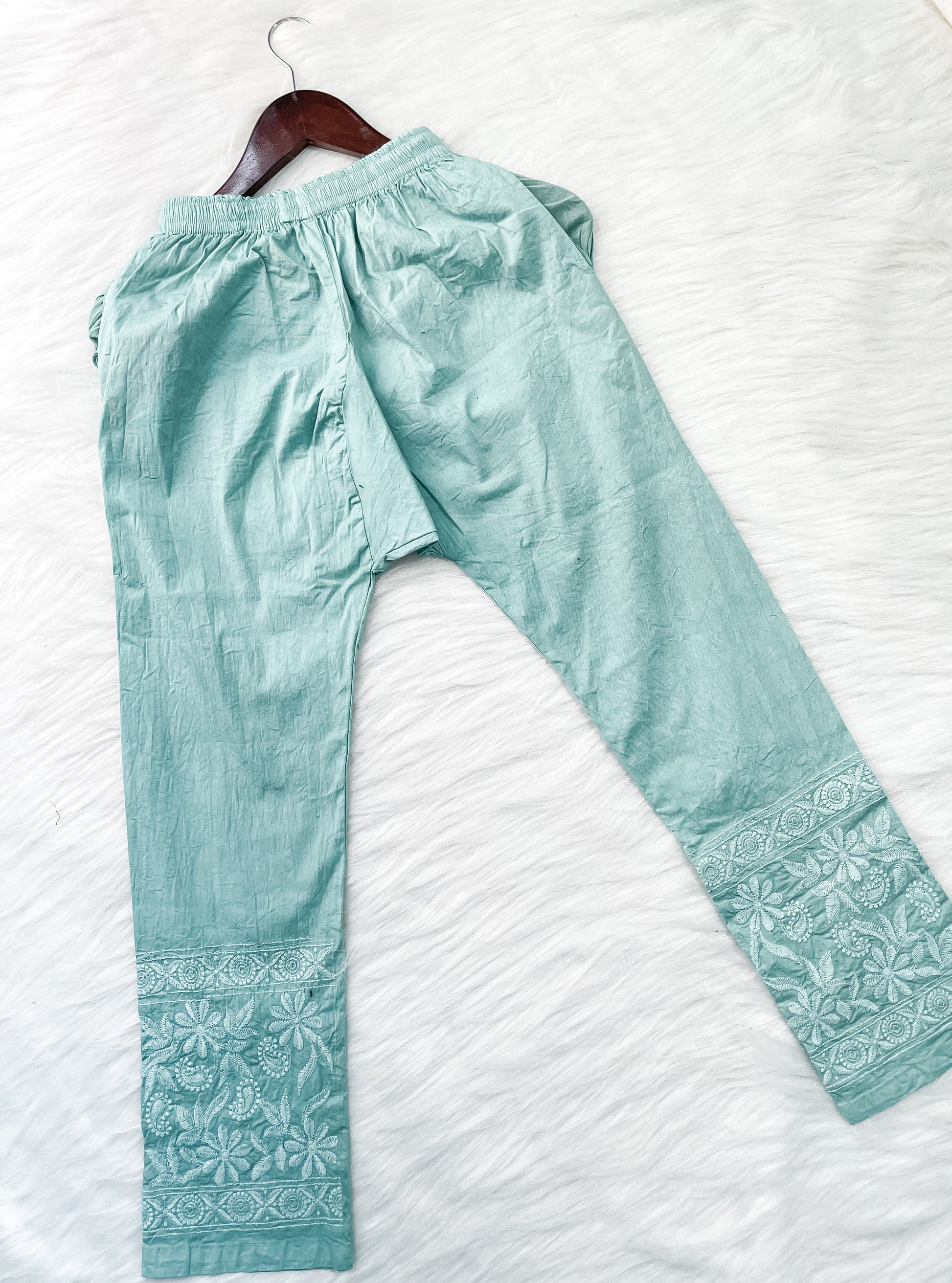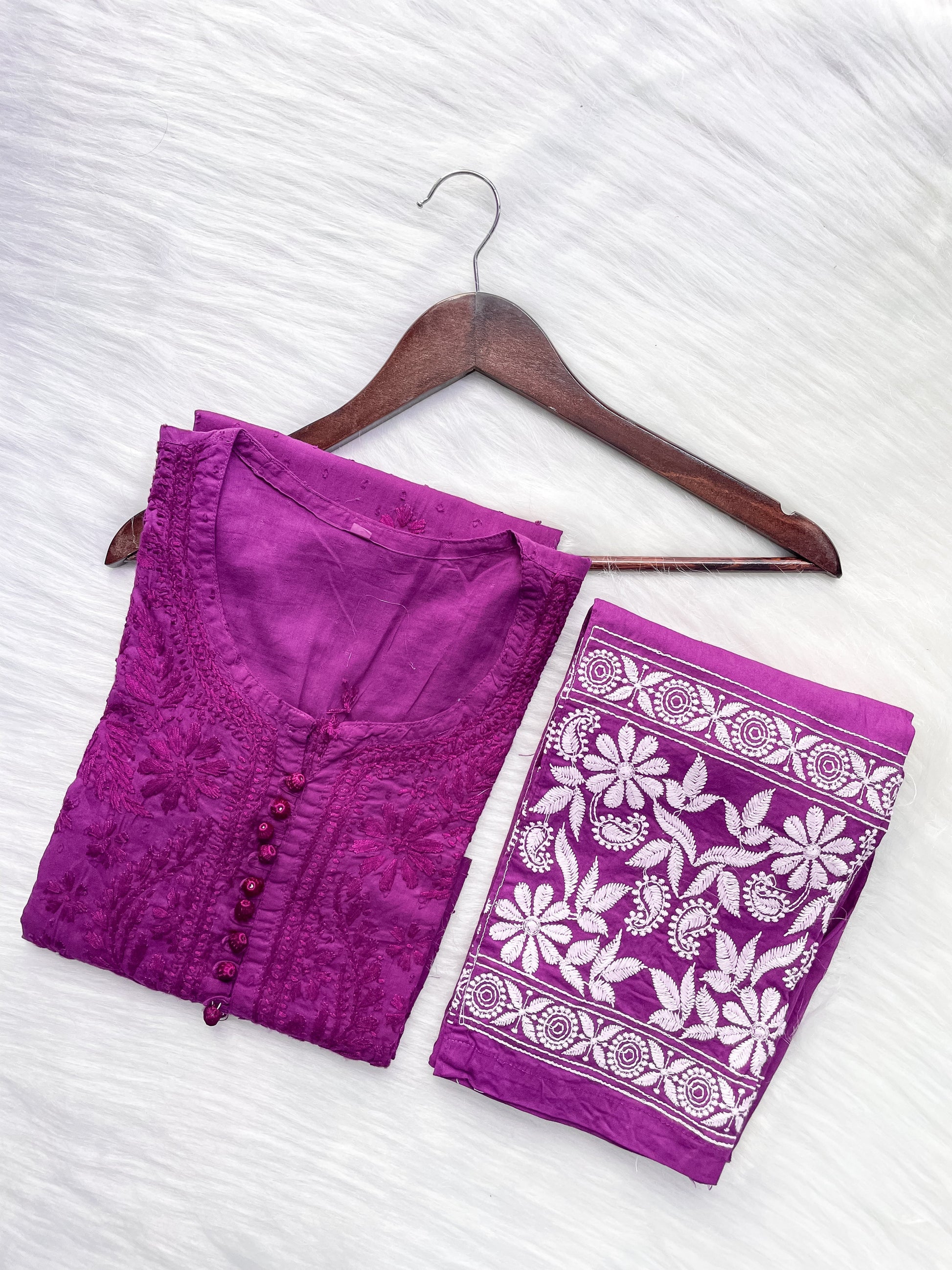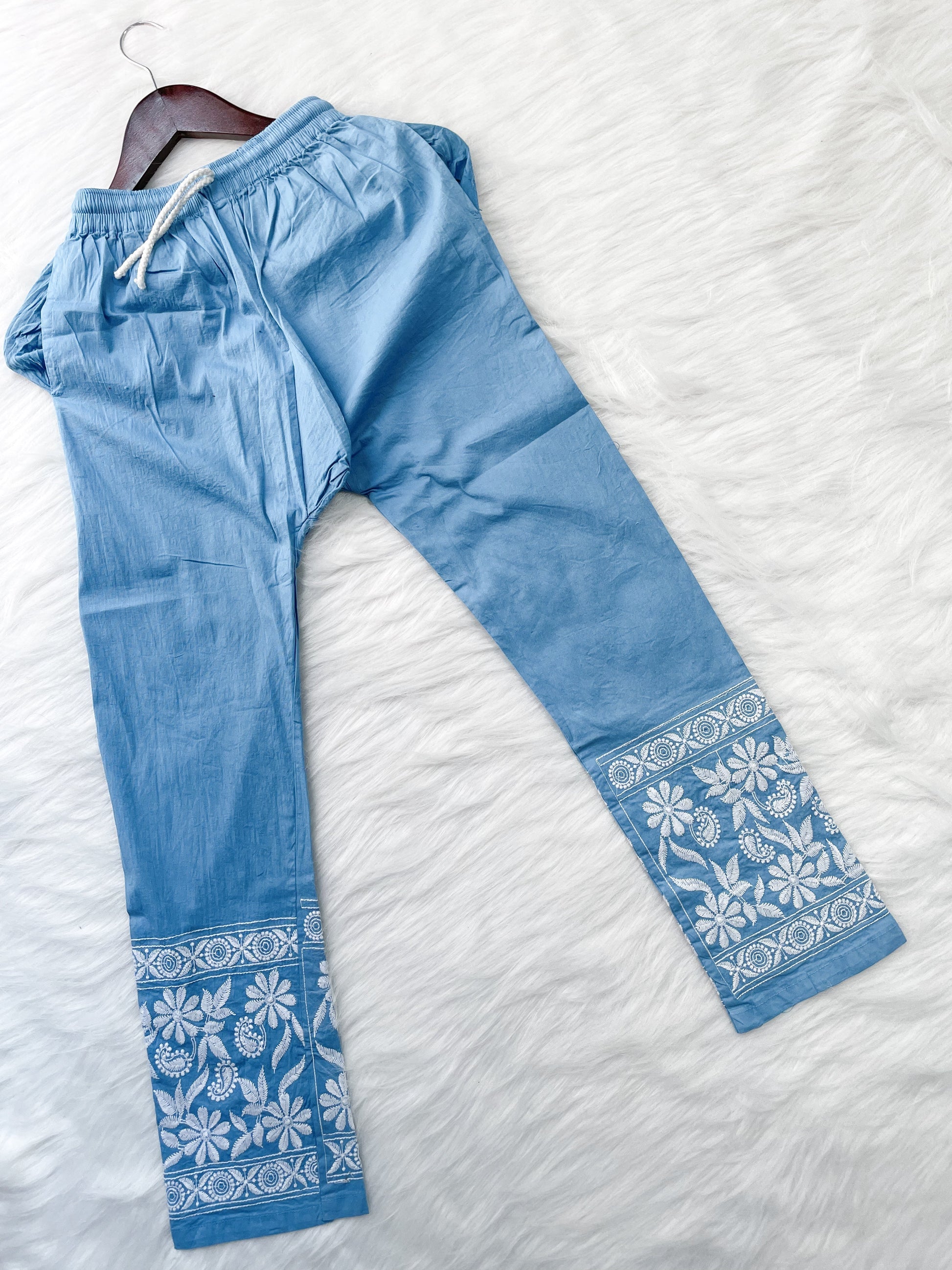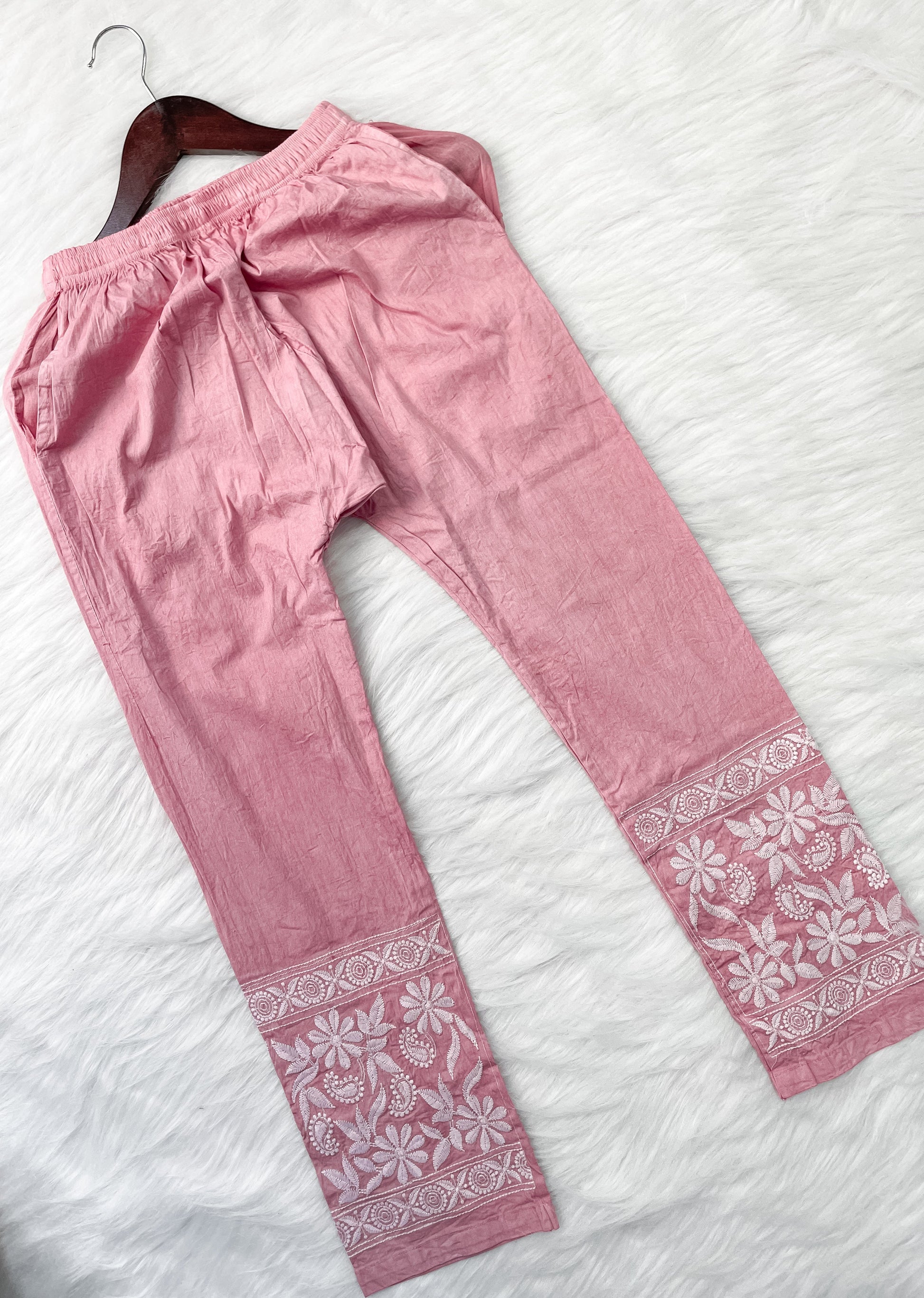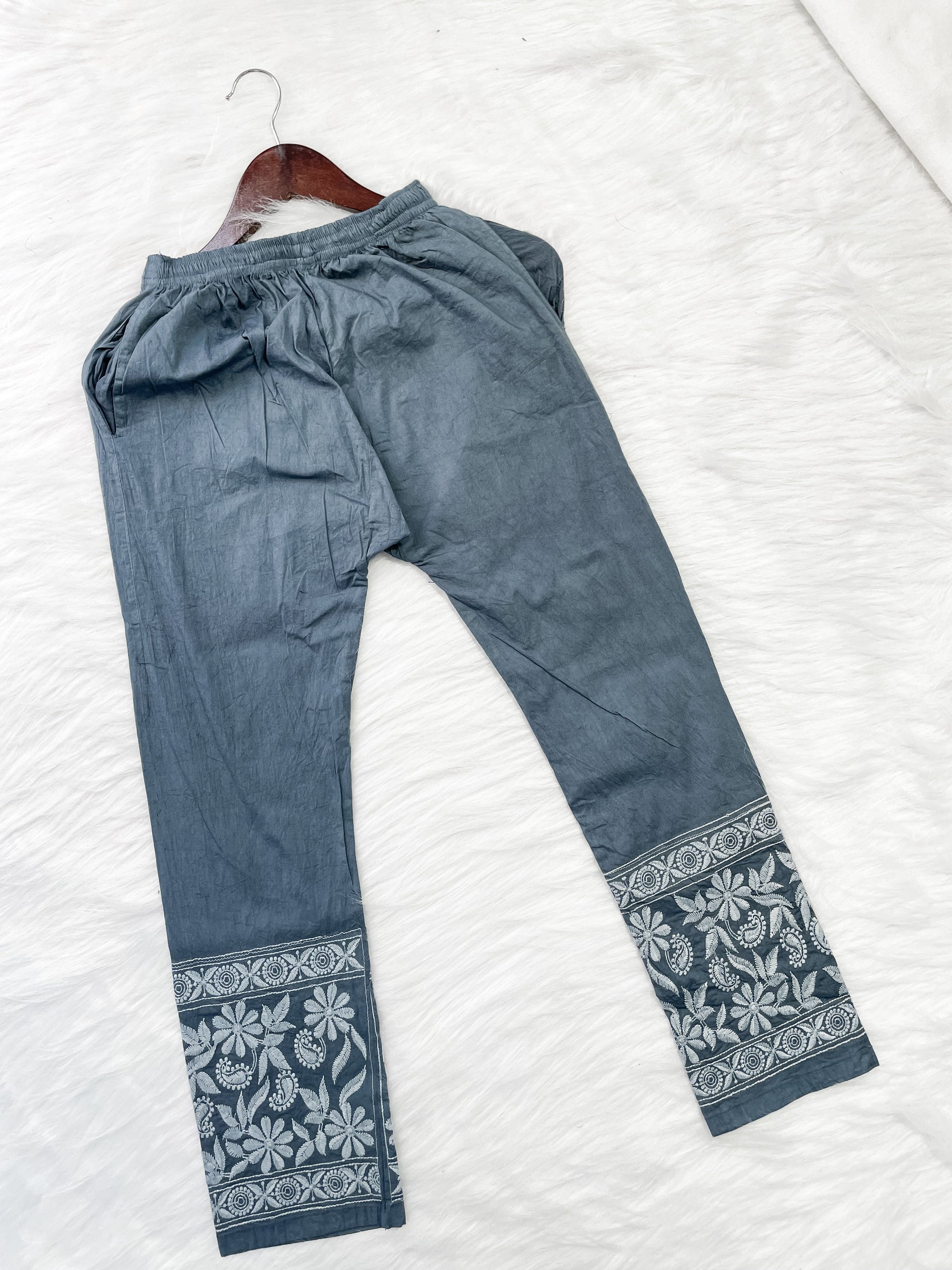 Dyed Cotton Chikankari Kurti & Lycra Pant Set, Pockets Both Side of the Pant