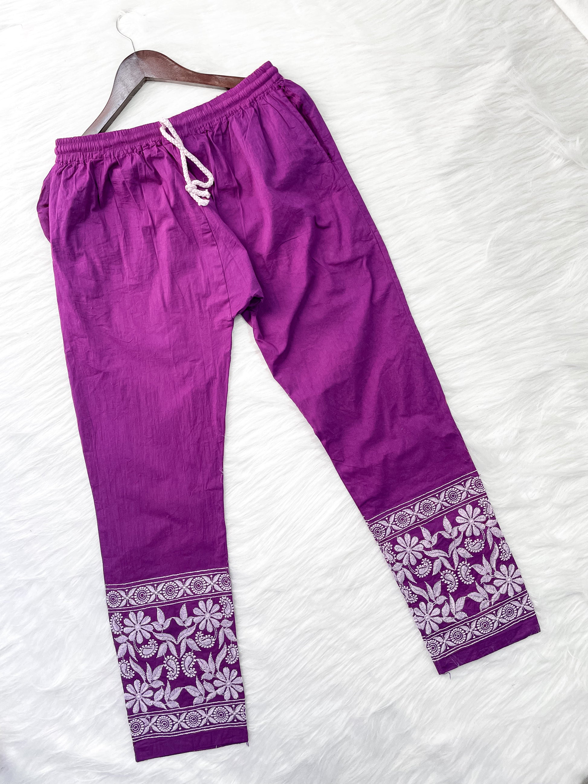 ✔ Stretchable Lycra Pant with “Doori” & Pockets: The pant is crafted from pure cotton lycra, featuring a soft waistband with “Doori” and side pockets, providing both functionality and style.