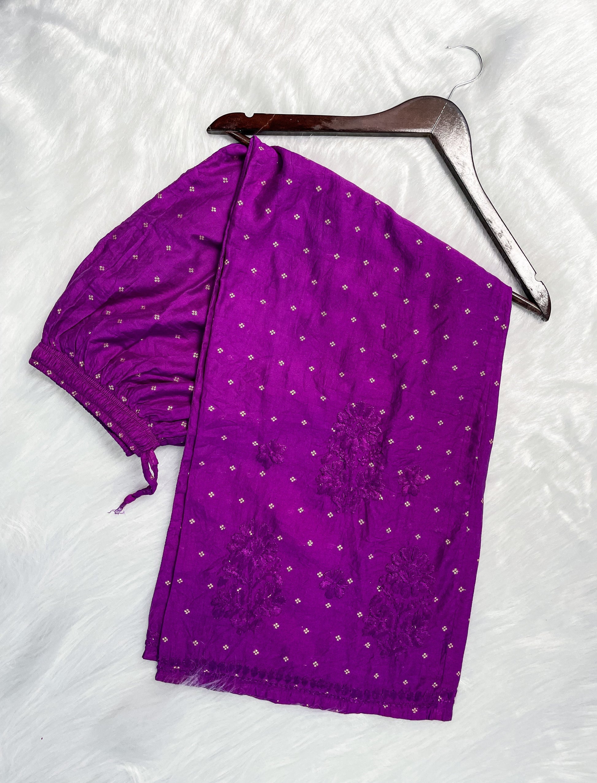 Premium Dyed Chanderi Silk Lucknowi Chikankari Kurti and Palazzo Set for Women