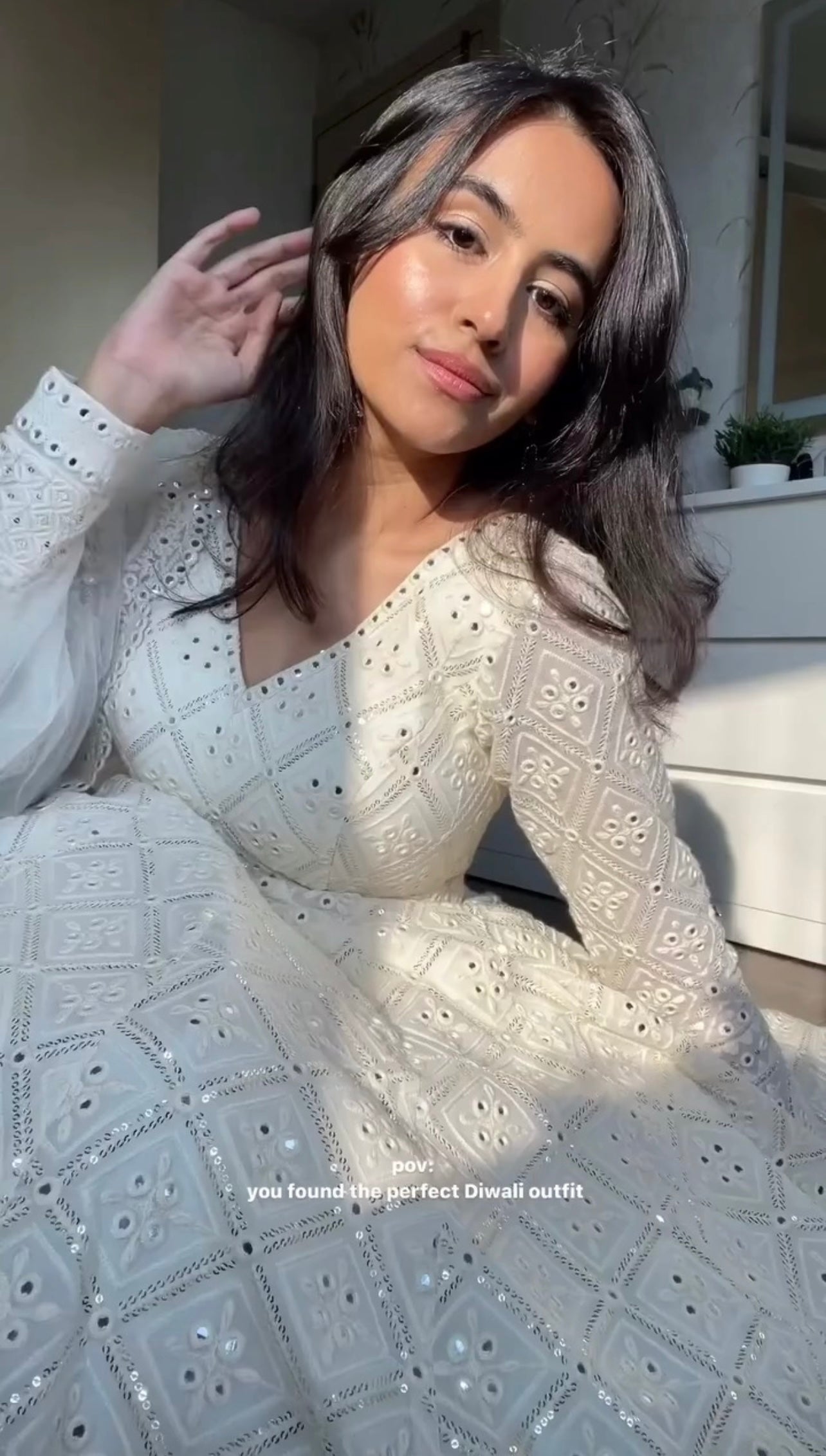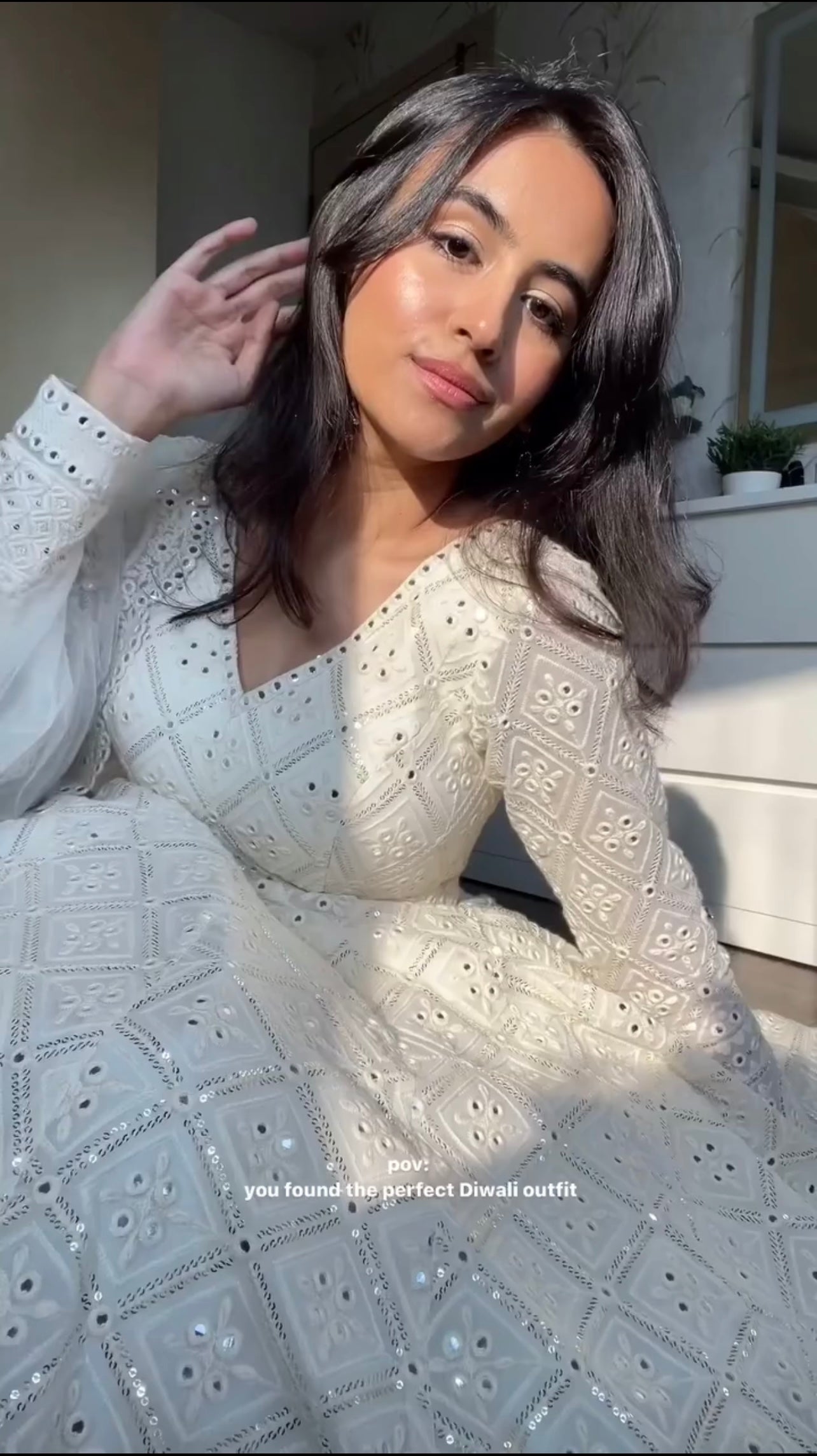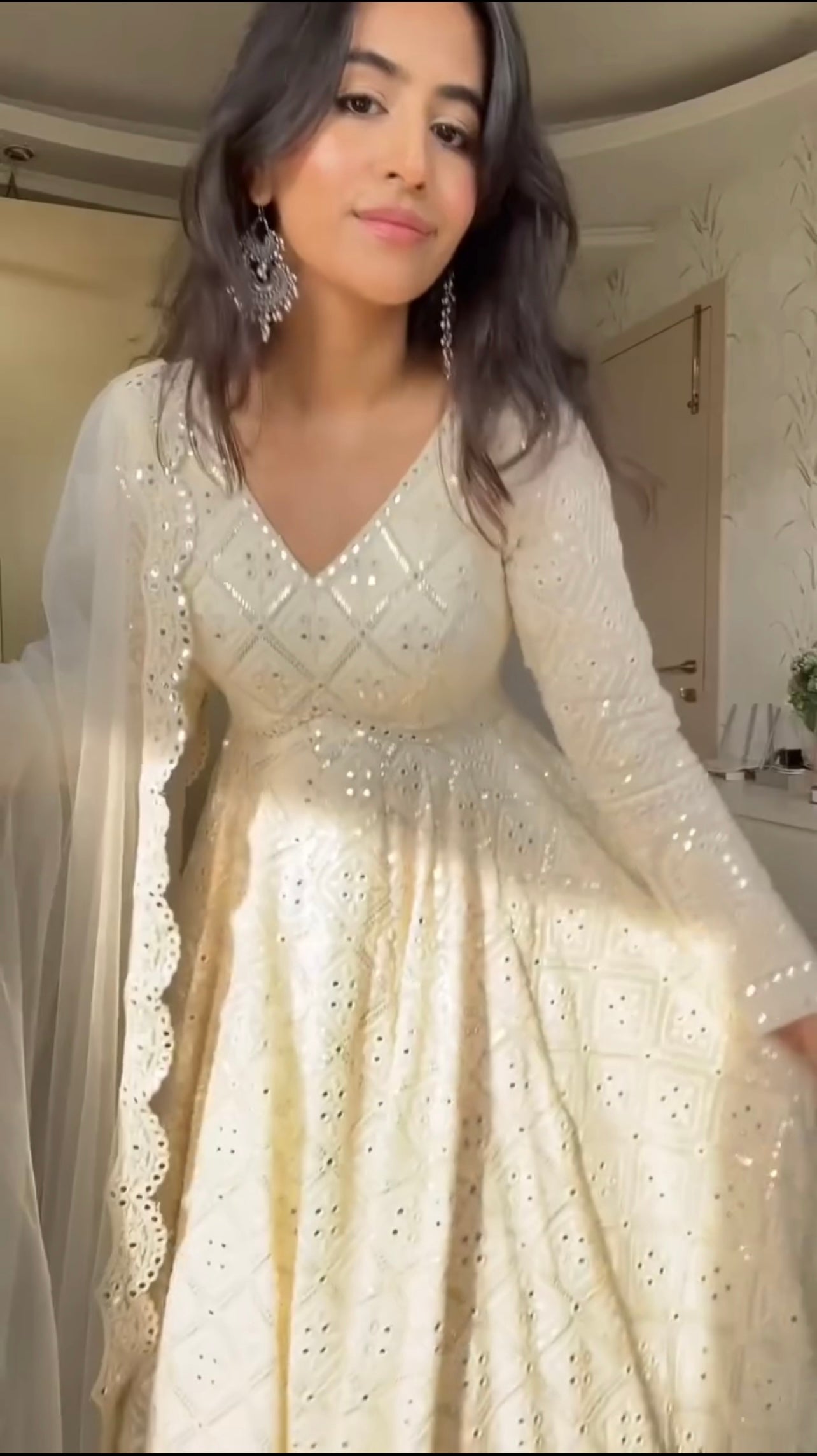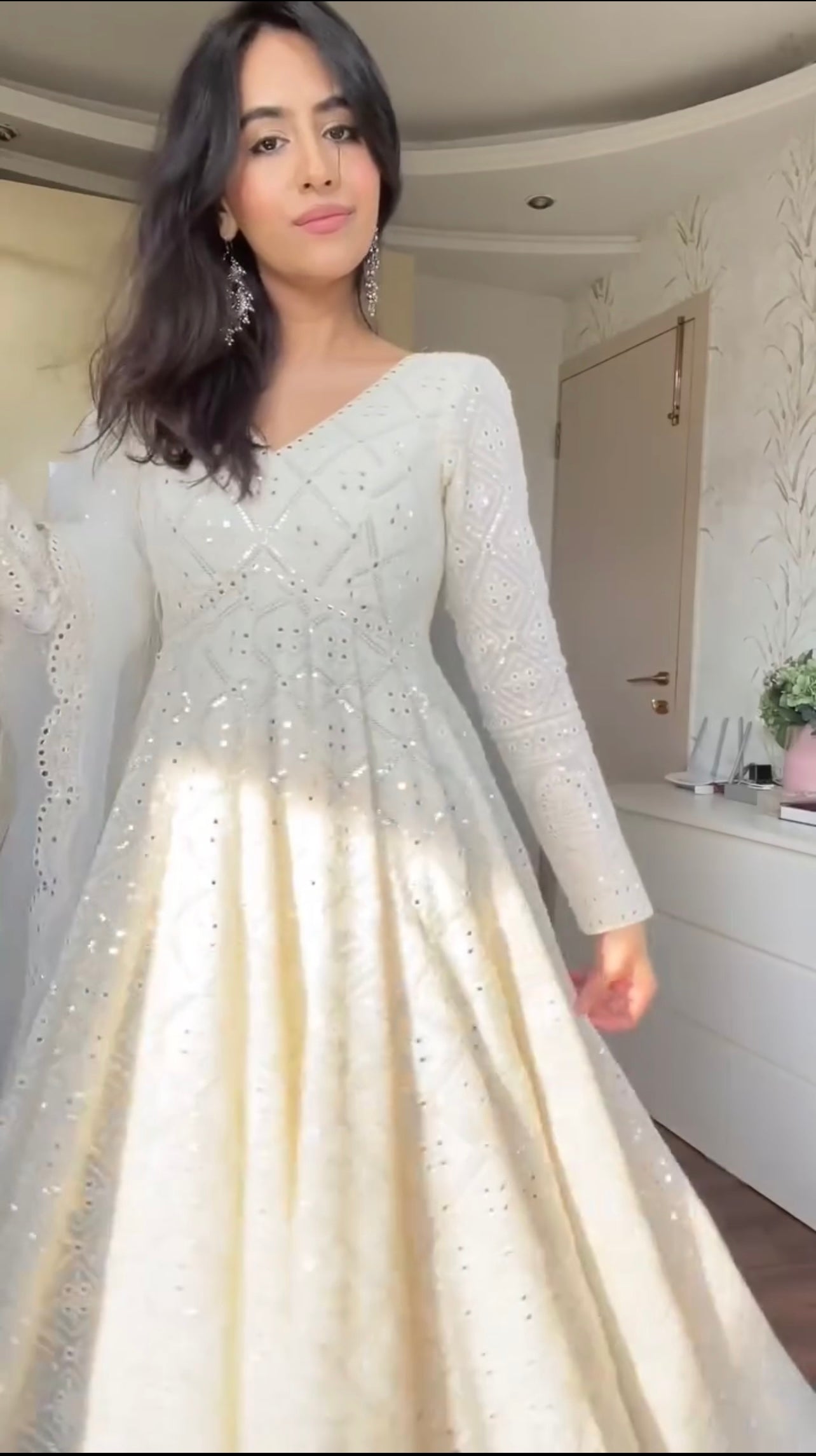 WHITE EMBROIDERED GEORGETTE ANARKALI FULLY STITCHED SUIT SET