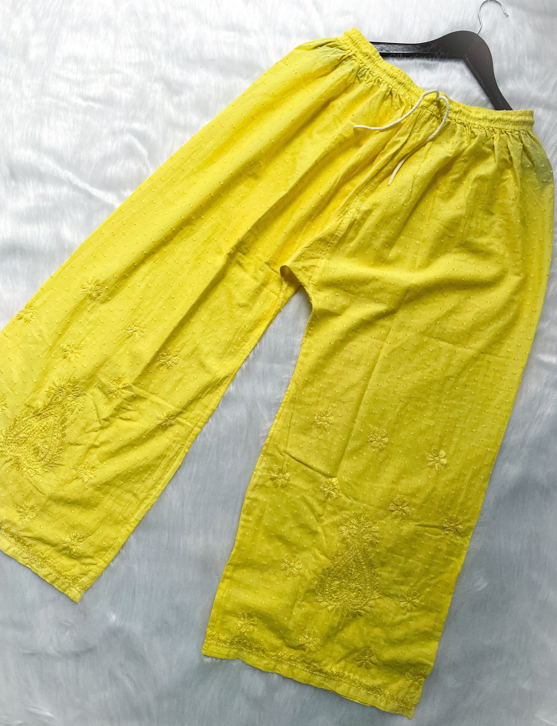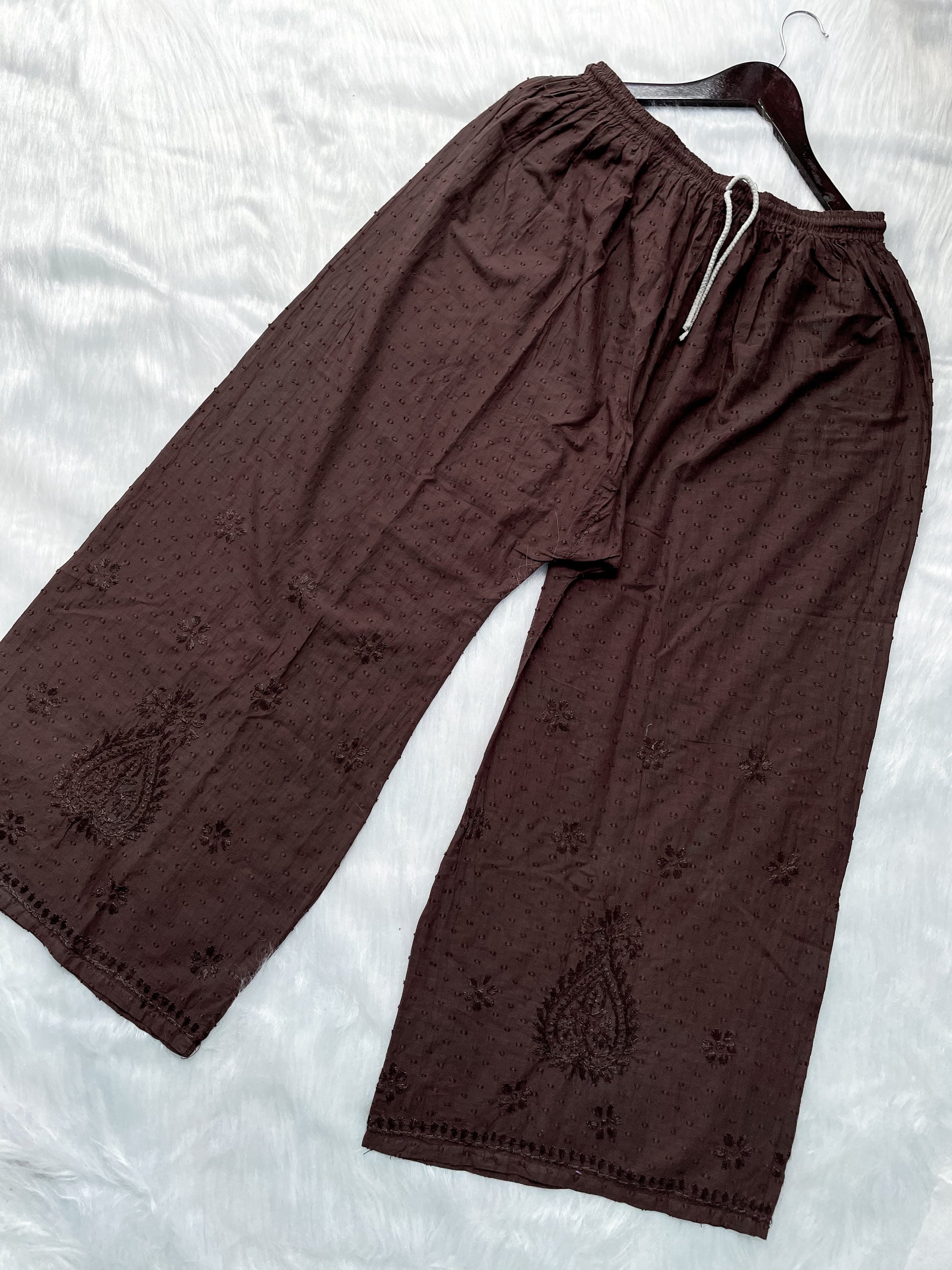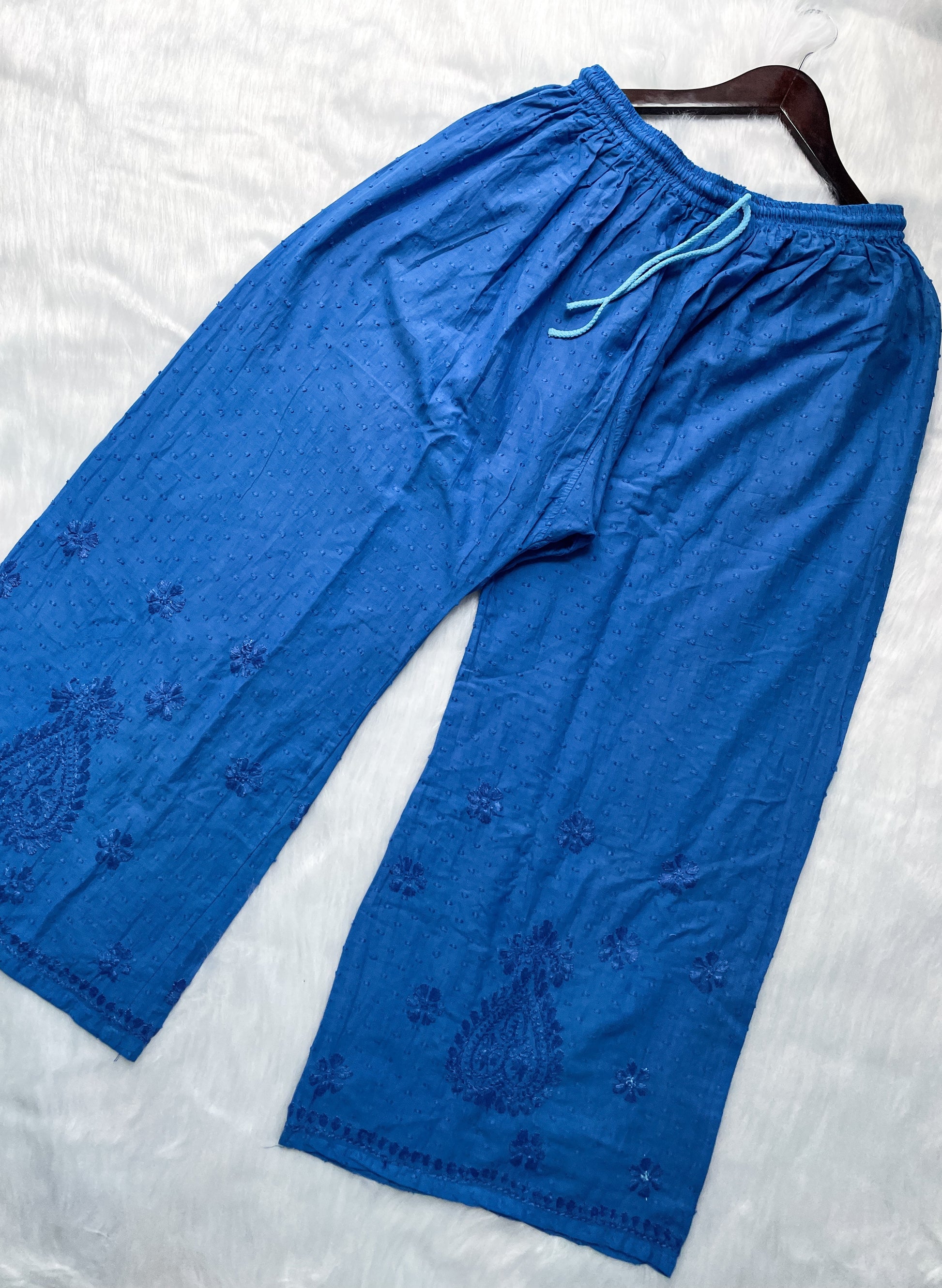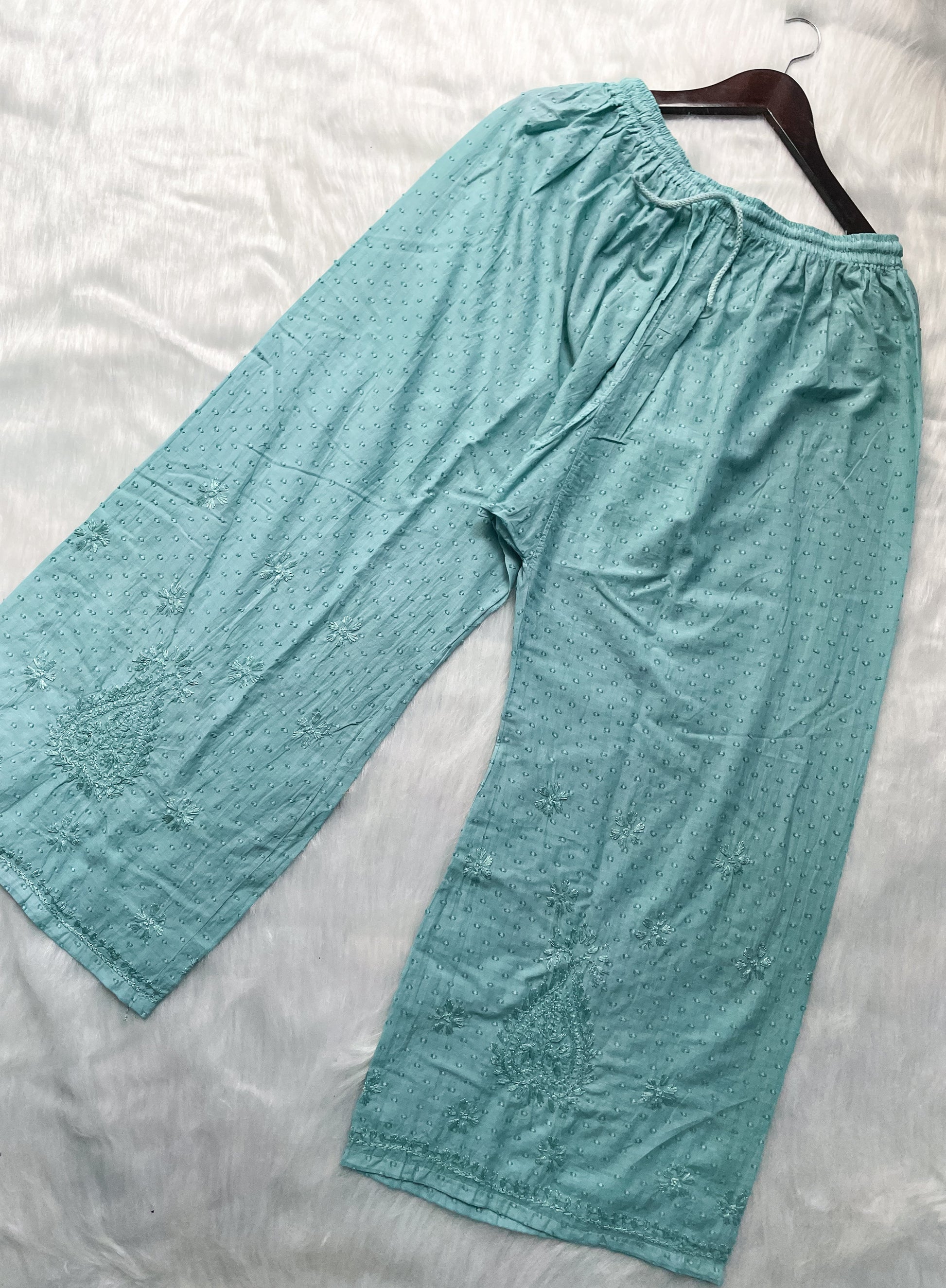 Handcrafted Dyed Lucknowi Chikankari Cotton Kurti, Palazzo & Dupatta Set
