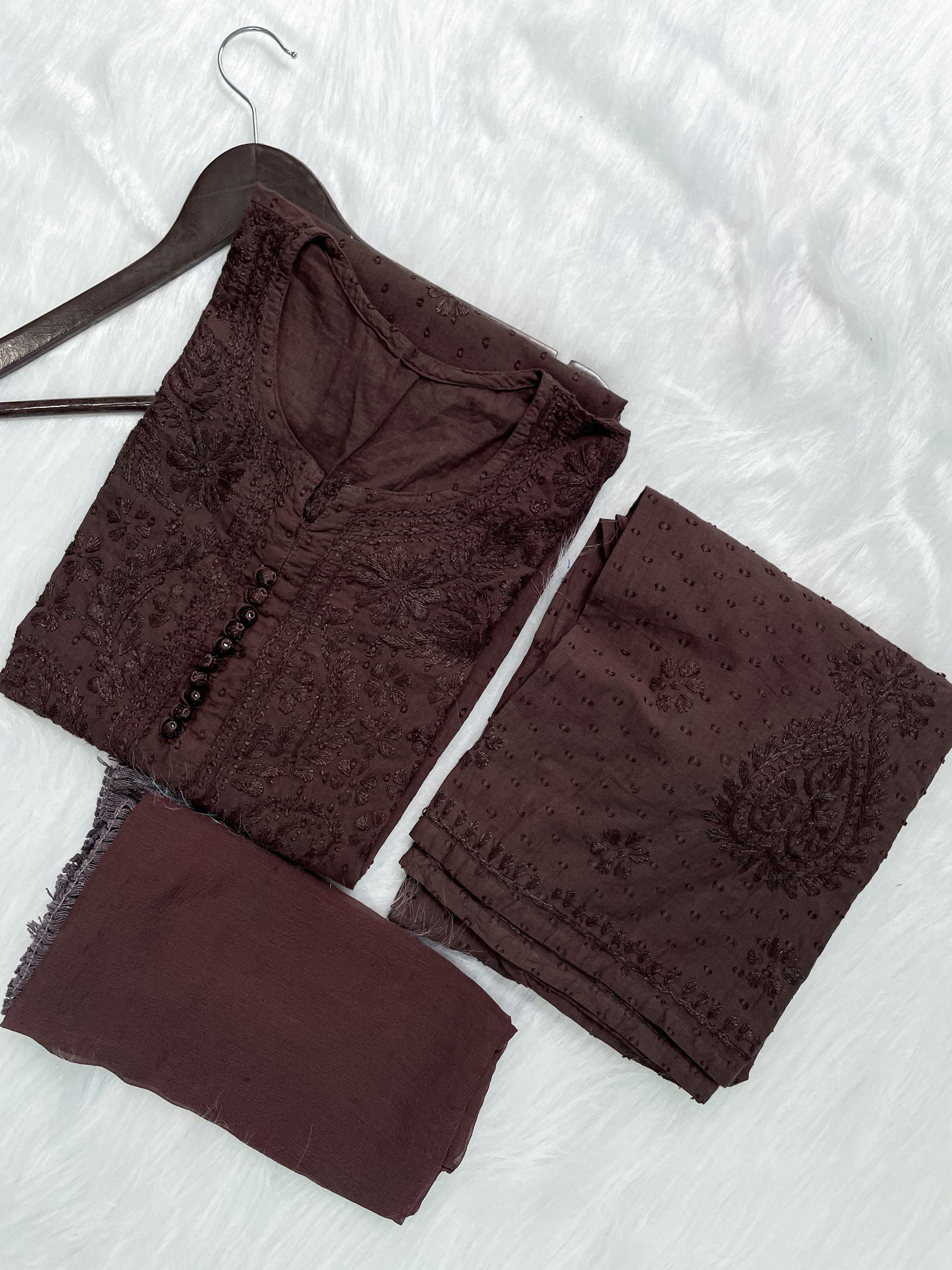 ✔ Intricate Handwork: Features authentic Lucknowi Chikankari hand embroidery, enhancing the elegance and richness of the outfit.