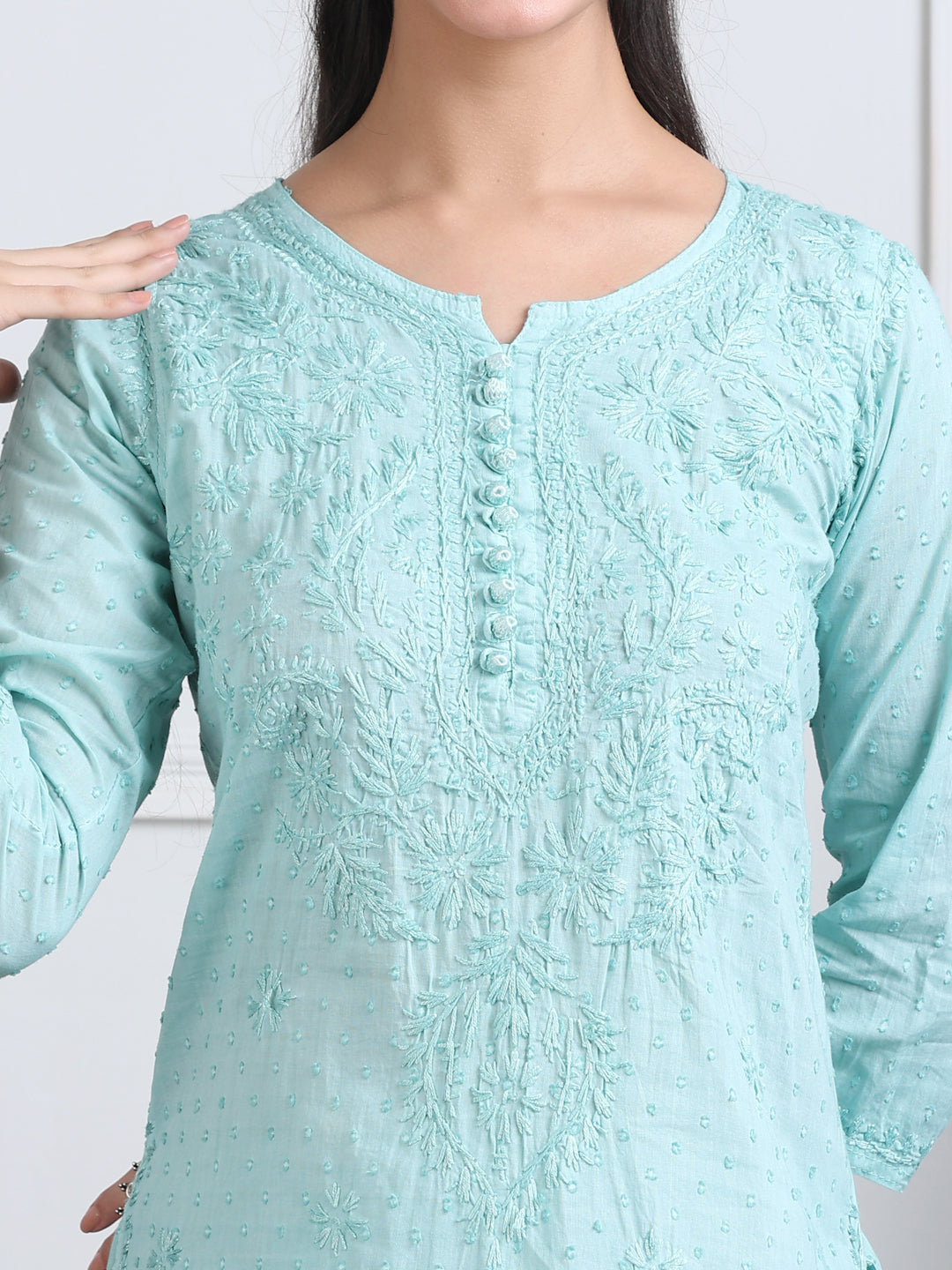 Style Name: Handcrafted Chikankari Soft Cotton Kurti Palazzo and Dupatta Set