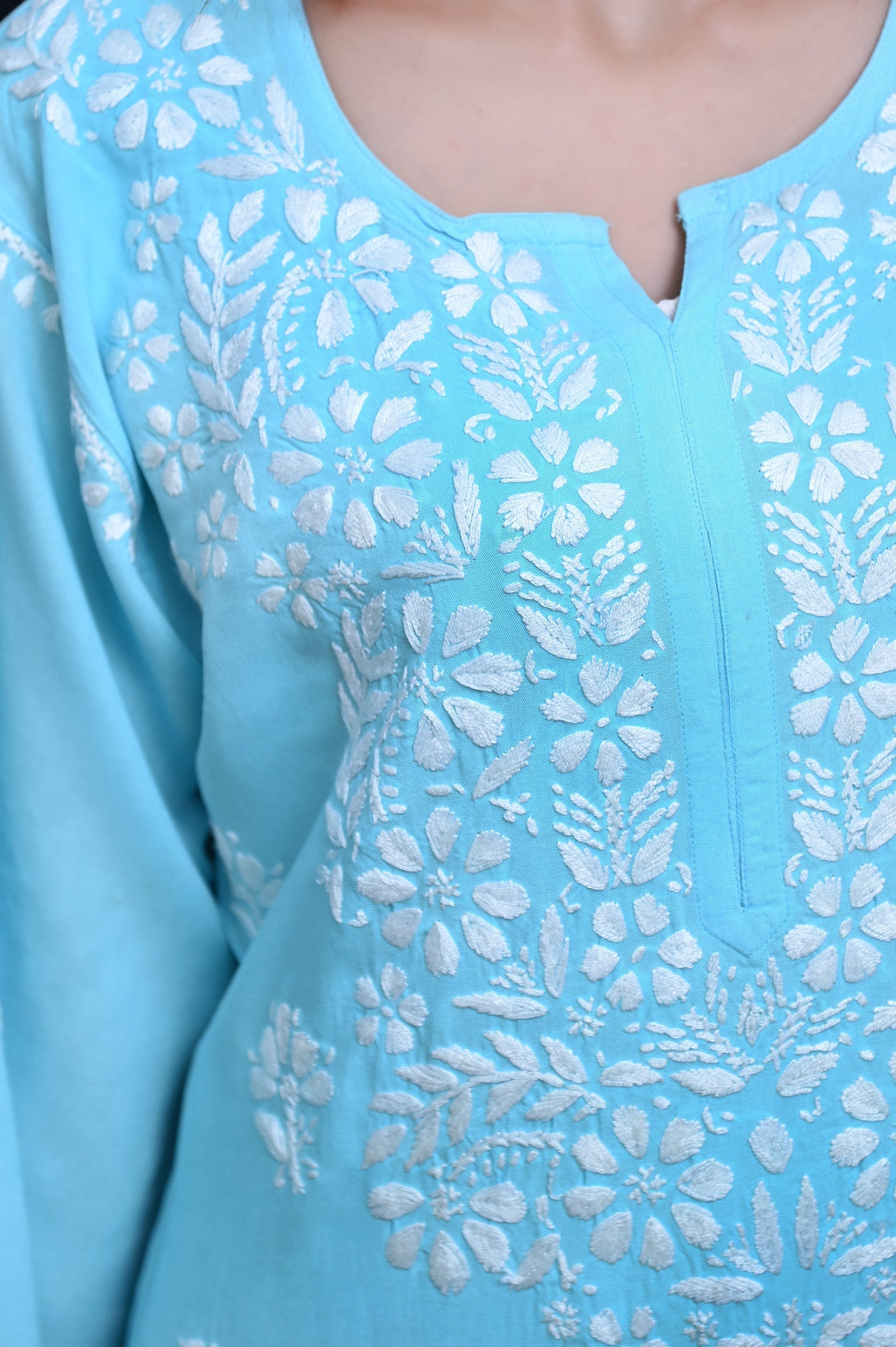 Women's Exclusive Straight Soft Rayon Lucknowi Chikankari Kurti.